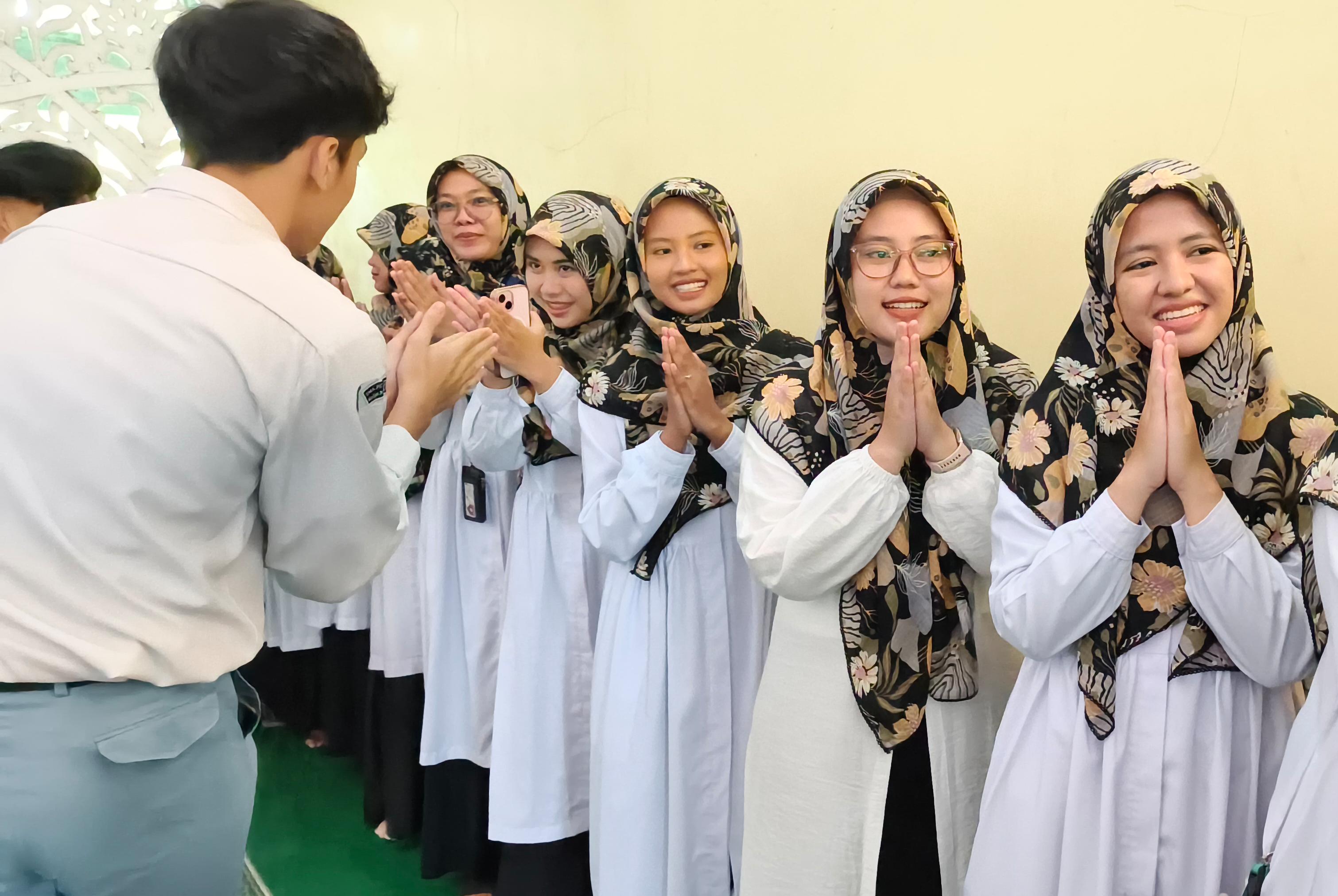 Para siswa dan siswi tampak antusias mengikuti rangkaian acara, saling bersalaman serta bermaaf-maafan dengan penuh kehangatan. Momentum ini menjadi ajang mempererat kebersamaan serta memperkuat nilai kekeluargaan di lingkungan SMAIT BBS.