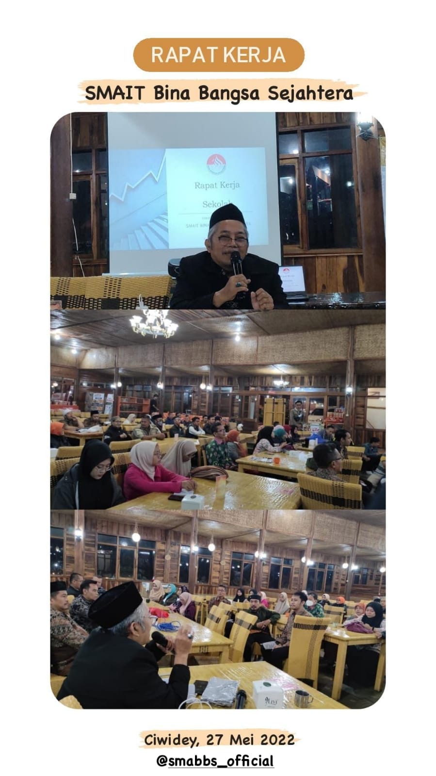Seluruh guru-guru dan staff SMAIT BBS mengikuti kegiatan Rapat Kerja yang diadakan di Ciwidey Bandung, kegiatan ini bertujuan untuk mematangkan persiapan menyambut tahun pelajaran 2022-2023 yang rencananya akan di lakukan secara tatap muka penuh.